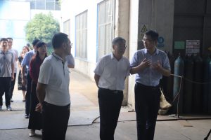 盛和組一行人走進公司生產車間,邊聆聽張濤俊總經理介紹了公司的主要產品以及運用方向,邊參觀了車間生產環(huán)境和產品設備。